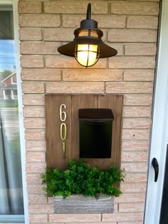 Here is another brilliant take on integrating the mailbox, house numbers, and a planter into one gorgeous vertical display. This design uses rich, dark-stained wood panels, giving it a deep, earthy texture that feels so warm and grounding.