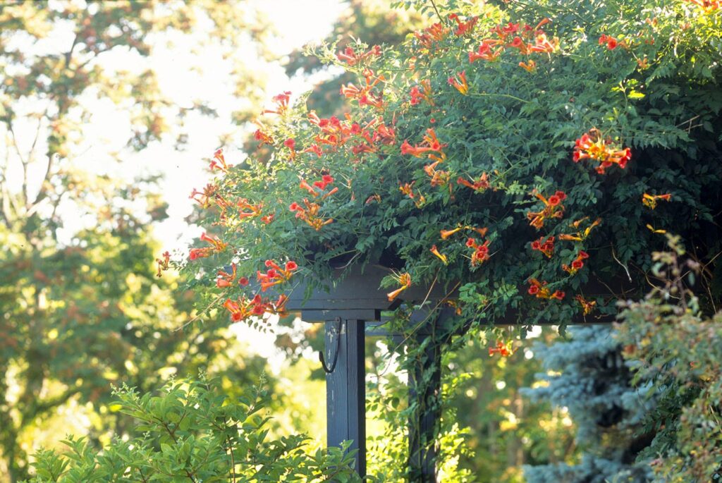 Trumpet Vines on a Dark Pergola