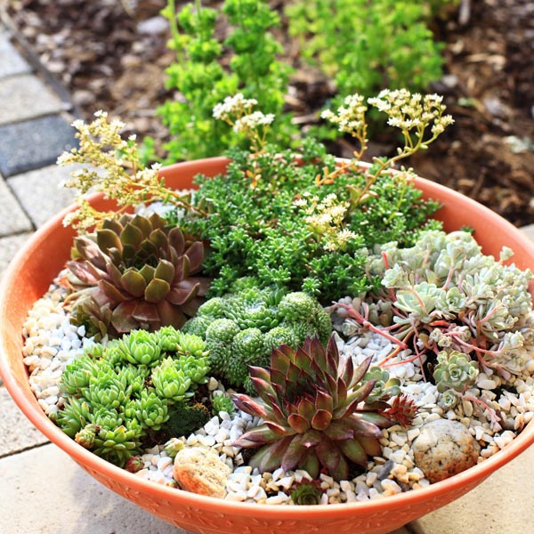 This type of dish garden thrives in bright light and requires minimal watering, making it ideal for busy individuals or those new to gardening.