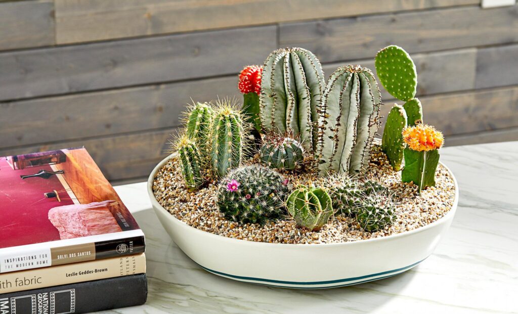 Cacti are resilient and require minimal care, making them perfect for a dish garden. Choose a variety of cacti with different shapes and sizes to create visual interest.