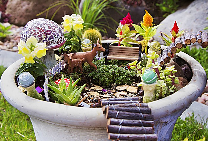 Add tiny fairy figurines, a small house, and other miniature accessories to complete the look.