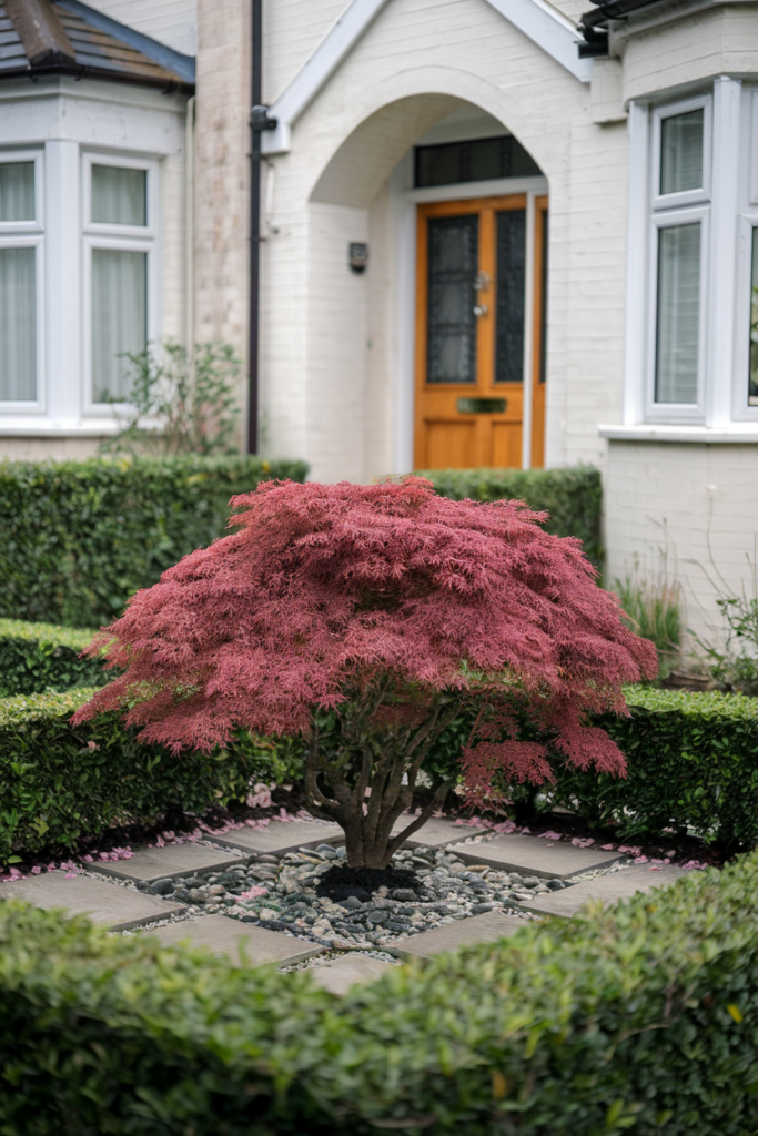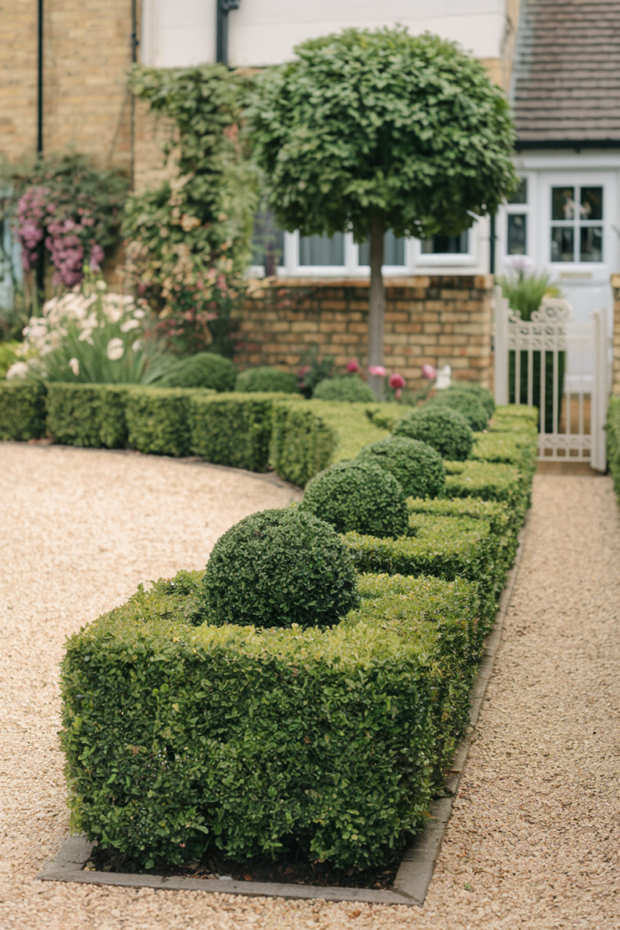 For this highly manicured look, choose a slow-growing evergreen that tolerates heavy pruning (like boxwood) and invest in regular, precise shearing to maintain the razor-sharp lines.