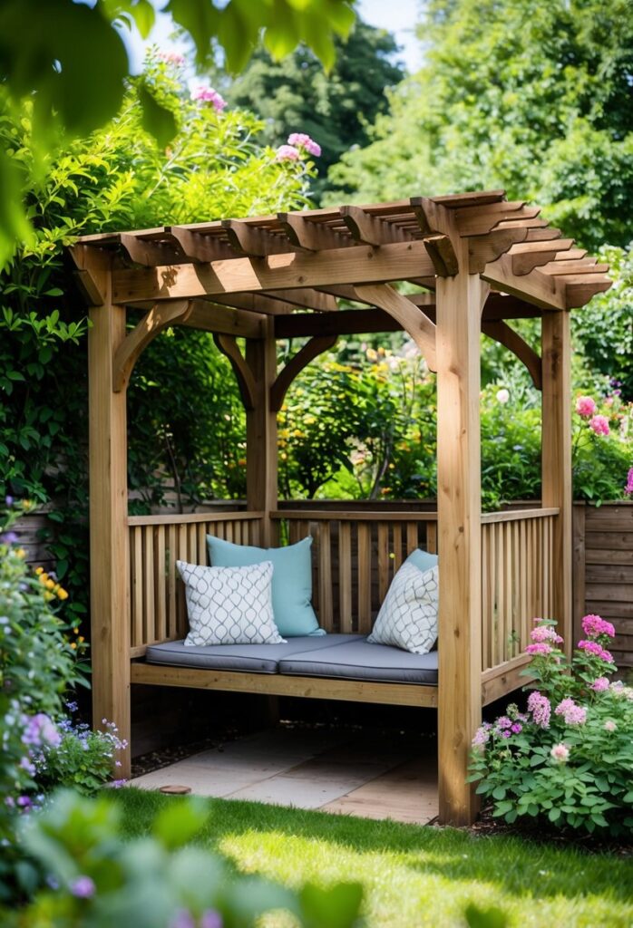 Wood Pergola Bench Shelter
