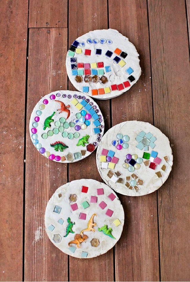Whether you’re dreaming of cheerful mosaic tiles shimmering in the sun, concrete buttons adding a playful pop of color, oversized natural flagstones for a rustic look, or sweet paw prints winding across the lawn, these DIY projects are pure joy. They bring so much personality!