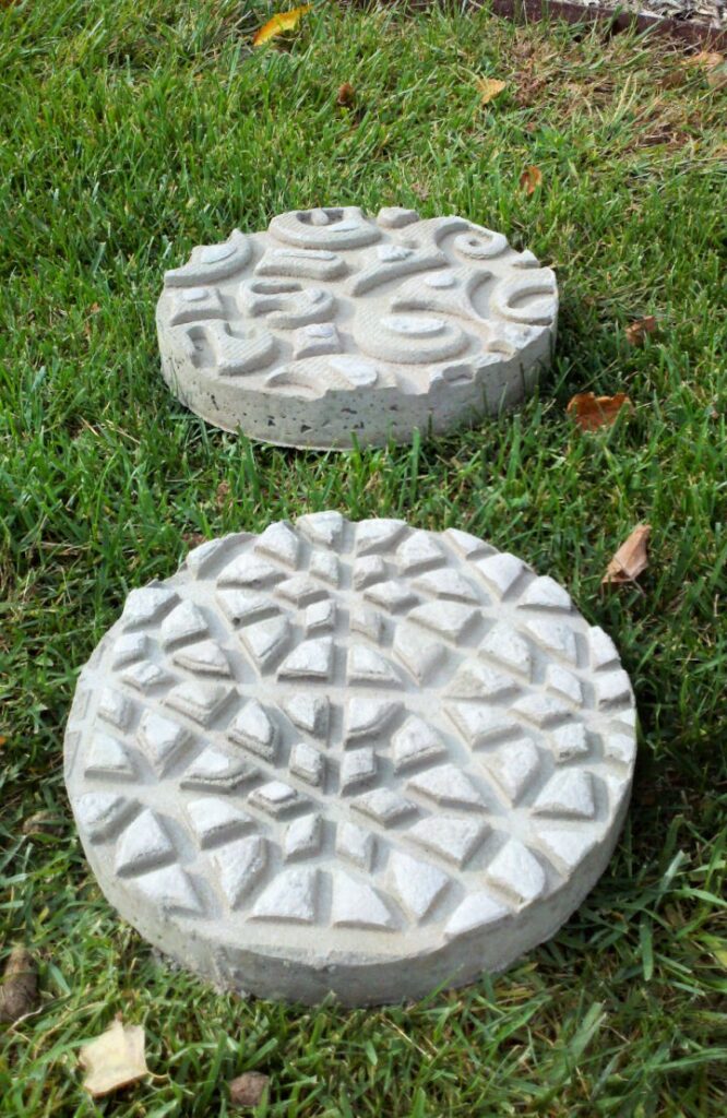 Achieving this high-detail look requires a sturdy, pre-formed mold made of silicone or heavy plastic, like a patterned round cake pan or a concrete form liner, ensuring the cement is pressed deeply into every crevice.