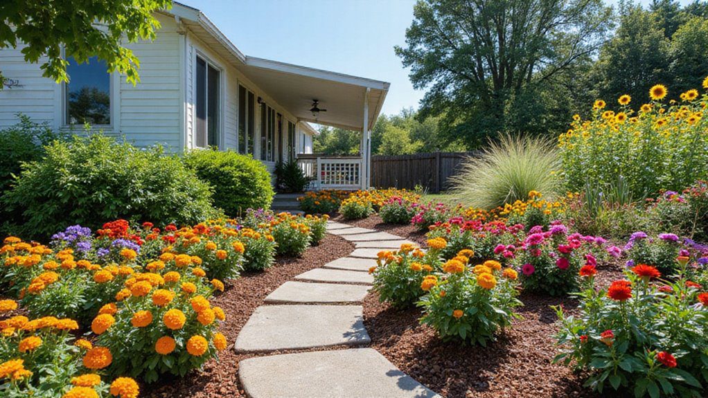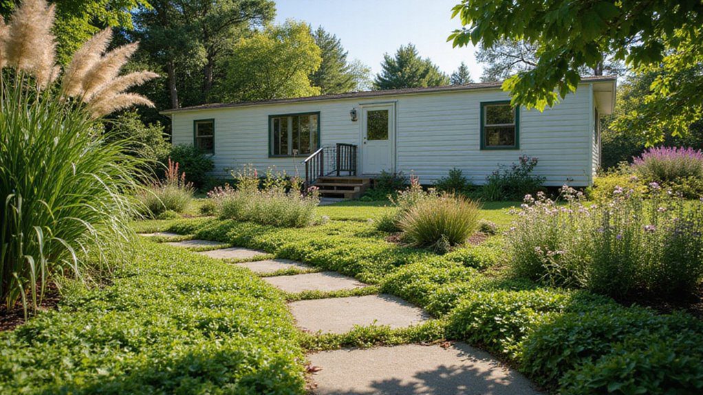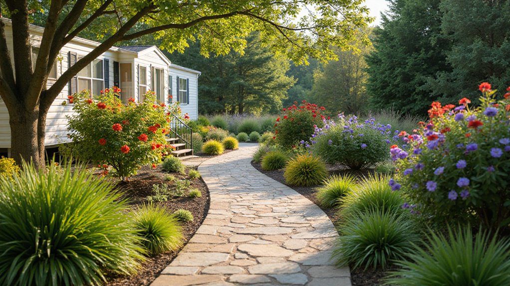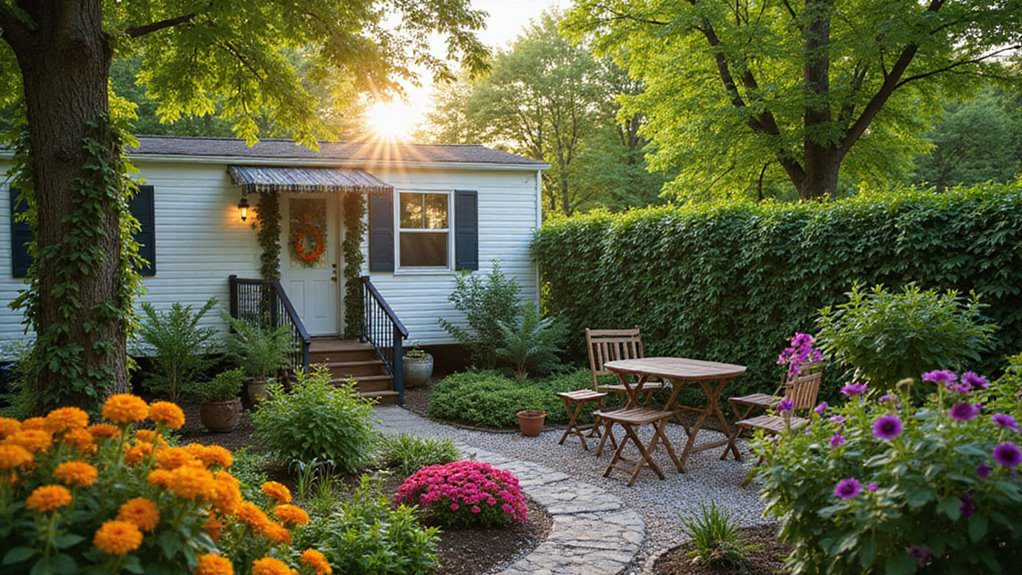 A simple insight from landscape designers is that using a mix of heights—from low ground cover to medium shrubs and tall trees or vertical elements—always creates depth and makes any home feel more established. This is key for enhancing a mobile home’s presence.