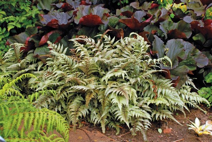 Look for foliage plants with silvery or white markings, such as Japanese Painted Ferns or Brunnera, to immediately lift the light level in a shady spot.